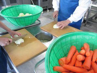 たくさんの野菜を使った献立です。色々な野菜を、調理員さんが朝から丁寧に切ってくれました。
