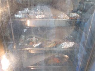 オーブンで焼いている時、水がボコボコしている様子が見えました。また、オリーブオイルやにんにくなどの良い香りもしていました。