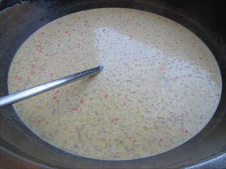 「ポテト入りコーンスープ」は、普段のコーンスープに日野産の「じゃがいも」を入れたのが特徴です。食べやすいように角切りにして入れました。