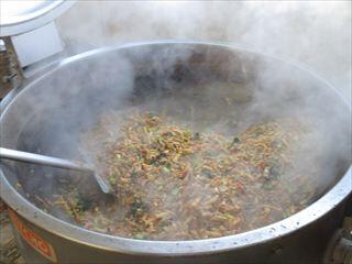 今日は、肉や野菜、キムチなどと一緒に炒め合わせました。