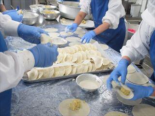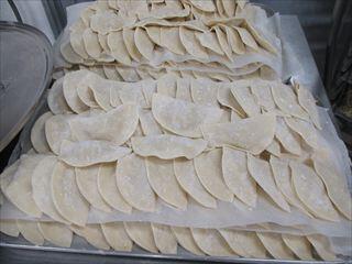 生地をひとつひとつ、 餃子の皮に包みました。