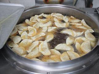 さつまいもは蒸してからから潰し、粗く砕いた大豆と、バター、砂糖、少量の塩を混ぜ、ぎょうざの皮で包み、油で揚げました。
