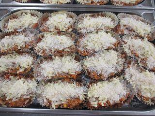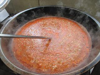ミートソースの水分でアルファ化米が戻るようにしました。