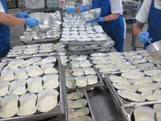 食品ロス削減の取組のひとつとして、給食では、定期的にアルファ化米を使用しています。