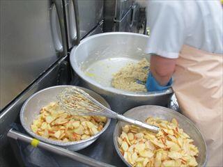 りんごは皮付きのままいちょう切りにして生地に加えたことで、彩りや食感を良くしました。