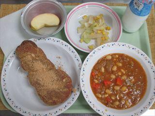 1月の給食より、2学期に給食委員会で実施したリクエスト献立を取り入れています。今日の「きな粉揚げパン」と「りんご」は、全学年上位にランクインしていたメニューです。
