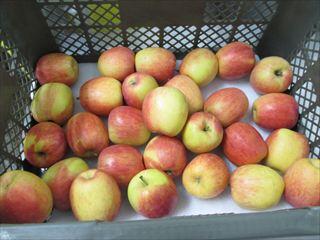 今日のりんごは「スリムレッド」という種類です。名前のとおり、スリムな縦型の品種です。