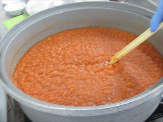 今日の「にんじんりんごジャム」は、農家の籏野利之さんが育ててくれた「にんじん」と、由木勉さんが育ててくれた「りんご」をすりおろし、レモンから絞った果汁とグラニュー糖を加え、弱火で1時間程度に込んで作りました。