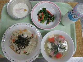 さらに、今が旬の菜の花を使った和え物と、ももの節句にちなんで「もものヨーグルト」を作りました。