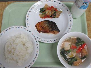今日の「さばのピリ辛焼き」は、さばに、醤油、酒、しょうがのおろし汁で下味をつけて焼き、醤油、みりん、ごま、トウバンジャンなどを入れて加熱したタレをかけていただきました。