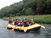 午後からは、全員が初体験のラフティングです!パドルを漕いでボートを進め、スピードを競い合ったり、水を掛け合ったり、と沢山笑顔が見られました。冷たい川の水に大興奮でした。