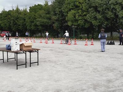そのあとは各クラスの代表者が自転車の危険な乗り方を体験しました。