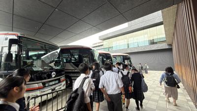 バスで京都の宿舎にむかっています。