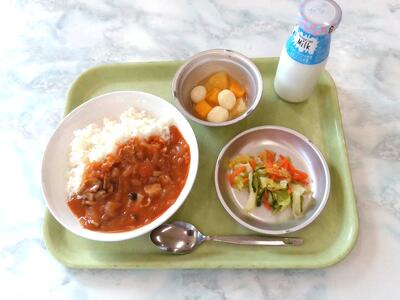 *ハヤシライス・コールスロー・白玉入りフルーツポンチ・牛乳