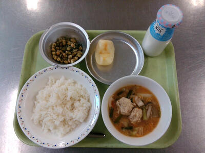 *チゲクッパ・青のり大豆・りんご・牛乳