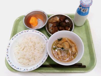 *ご飯・カツオとねぎの揚げ煮・みそ汁・柿・牛乳