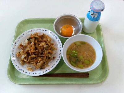 *バラ天丼・みそ汁・みかん・牛乳