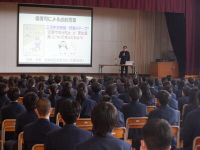 本日、2年生を対象に保護司の方の話を聞く会を行いました。