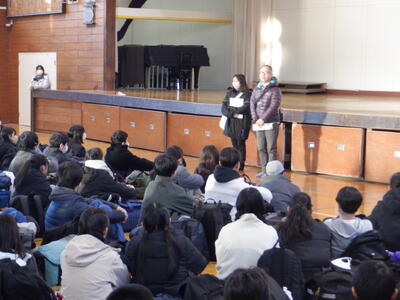 本日は1年生が明日からの校外学習、2年生は金曜日に行う鎌倉校外学習の事前指導を行いました。各係の係長がそれぞれの係の仕事内容の確認と班員へお願いしたいことを話しました。それぞれの学年で目的が達成できるようにみんなで協力して、けががなく元気に帰ってきてください。