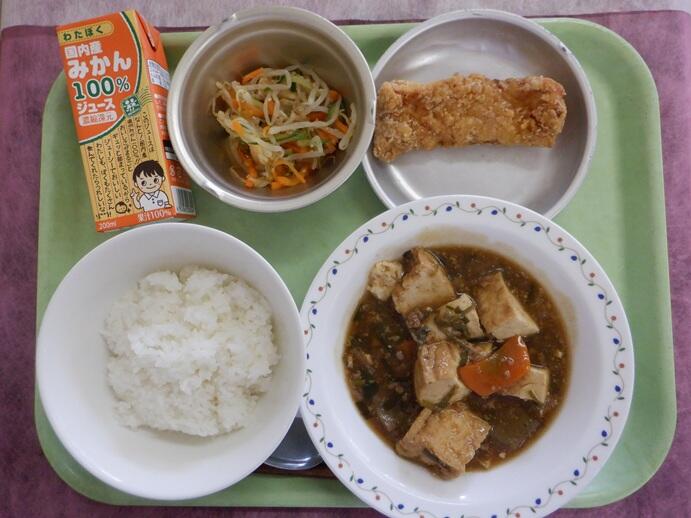 献立:御飯・家常豆腐・いかの唐揚・ナムル・みかんジュース