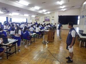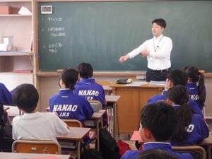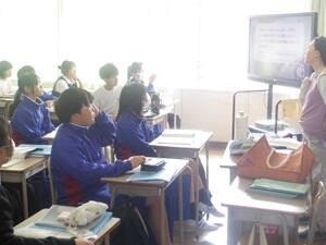 〇明日の1年MFW(ミニフィールドワーク)の事前指導の様子です。MFWとは、市内校外学習のことです。市役所や各事業所を班ごとに訪問し、職業について学びます。公共交通機関を使う班もありますので、明日はマナーを守って活動してください。