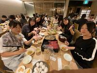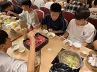 ◯楽しみにしていた夕食です。今夜はすき焼き食べ放題です。どの班もお肉をたくさんおかわりしていました。やはり美味しい食事は、人を幸せにしてくれます。宿舎の皆様、今日もありがとうございました!