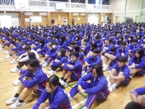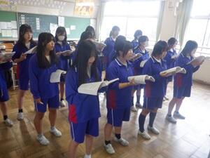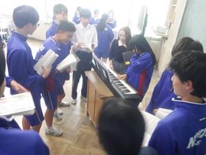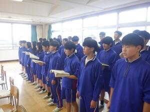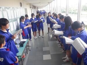 〇3年修学旅行、2年職場体験の次は合唱祭です。今日から合唱祭練習期間です。毎日6時間目に練習を行います。今日は初日ですので軽い声出し程度でしたが、 これから徐々に調子を上げていくことでしょう。皆さんの頑張りに期待しています。