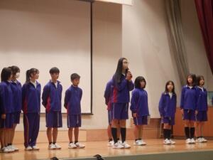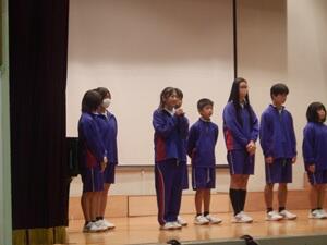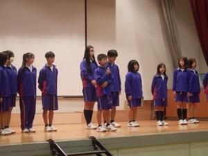 〇毎年恒例のあいさつ選手権です。学年ごとに取り組みます。どのクラスのあいさつが優れているか競います。1年生も2・3年生に負けないくらい元気な声で頑張っていました。(※写真は3年生)