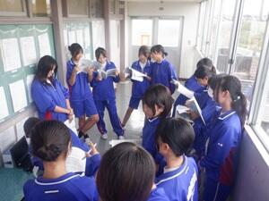 〇各クラス、いろいろ工夫して練習しています。不思議な形で並んでいるクラスもありますね。