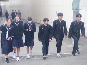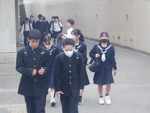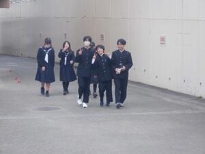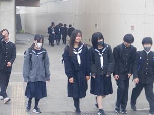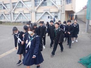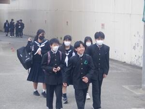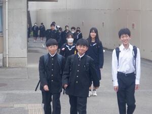 〇午前9時。1年生はミニフィールドワーク(MFW)に出発しました。班ごとに市内の事業所にお世話になります。マナーを守りしっかり活動してきてください。