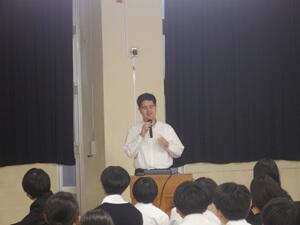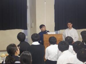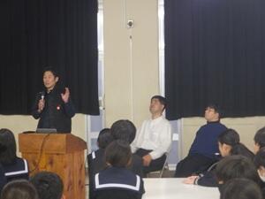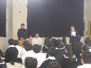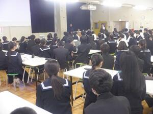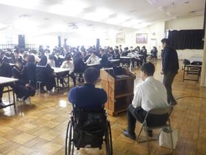〇2年福祉体験講話。あさって木曜日の白杖体験・車いす体験に向けて、社会福祉協議会の協力の下、障がいを持った方たちからご講話をいただきました。福祉の意味や共生するための工夫について話をしていただきました。ありがとうございました。