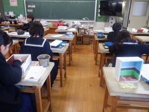 〇1年美術・2年数学の授業風景です。美術は、好きな本の印象に残った場面を立体化します。どんな作品が生み出されるか楽しみです。