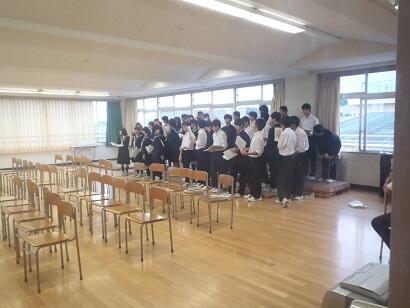 全体の動きを確認しながら、クラスごとに課題曲と自由曲を合唱しました。