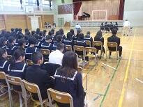 3年生の舞台上での全体合唱と、クラスごとの発表です。