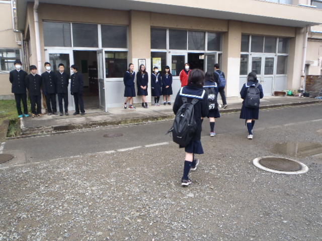 三年生が都立高校入試の発表日のため、登校生徒の数が少ない状況でした。
