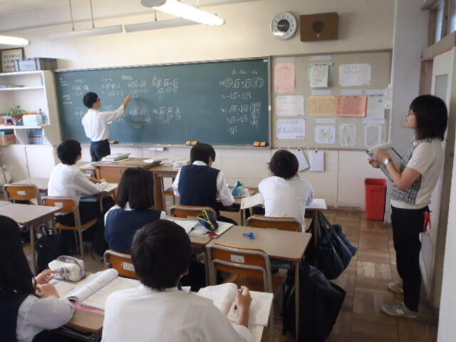 6時間目に「正の数・負の数の計算」の授業が、教育実習生の野田先生の指導で行われました。