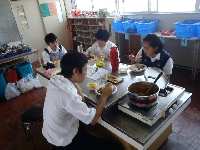 3.4時間目に家庭科調理室でカレーライスを作りました。
