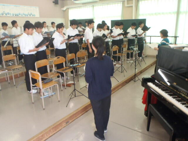 合唱祭に向けて、昼休みに6組と3年生有志による合唱練習を行いました。今日は男声のパート練習でした。