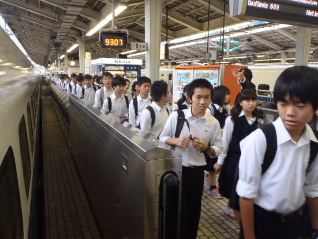 朝からあいにくの雨が降りましたが、3年生の修学旅行が始まりました。中央線の東京駅まで半行動で集合し、チェックを受けます。その後、出発式を行いました。