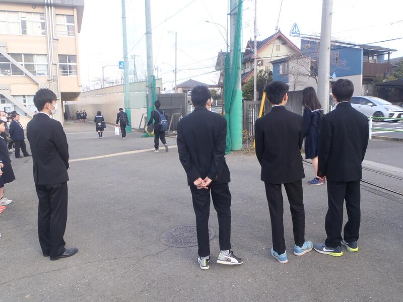 卒業式終了後、最後の学活を終え、在校生と保護者の見送りを受けました。
