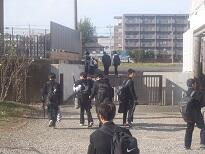 生徒朝礼 1年生スキーウエアサイズ合わせ