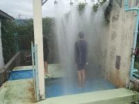 〇2年生プール。嵐のようなシャワー。寒いけれど、頑張っています!