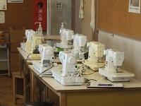 〇3年家庭科。ミシンと刺し子の実習です。みんな器用に作業をしています。