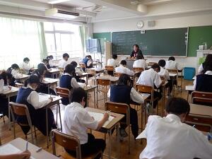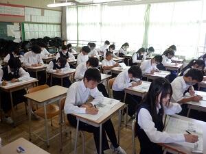 〇テスト前の30分間は自習の時間です。皆、最終チェックをしています。
