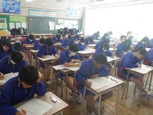 〇中間考査1日目です。本日は2教科実施で、給食なしで下校します。