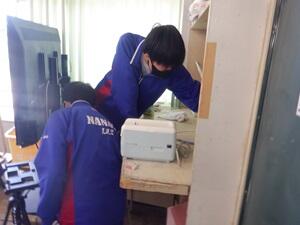〇避難訓練。今回は不審者対応の訓練です。皆で協力して、教室の入り口にバリケードをつくっています。非常時は、冷静な対応が必要です。