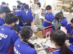 〇3年修学旅行事前学習の様子です。図書室での活動後、教室でまとめ作業を行っています。
