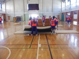 〇6組体育。跳び箱を上手に跳んでいました。うまく跳べない生徒も頑張って練習していました。片付けも自分たちでしっかり行います。