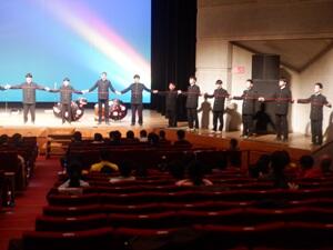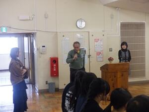 令和7年12月9日(火)6組合同学習発表会練習風景・2年社会を明るくする運動(保護司の方による講話)