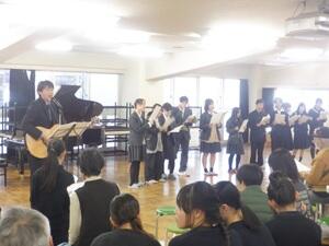 〇本日、七生中育成会主催の「ふれあい地域コンサート」が開催されました。計6組が出演者し、たくさんの方が観覧に来られました。本校からは、吹奏楽部の演奏と副校長によるギターソロの2組が出演し、会場を盛り上げてくれました。また来年も開催されますので、お時間がある方はぜひご来場ください。